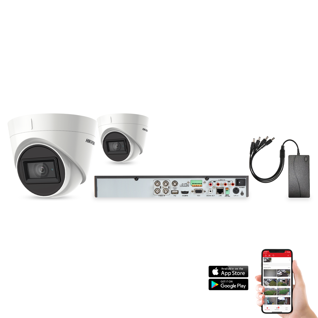 Monitor your property like never before with this outstanding 4K 8MP HD security system from Hikvision. The kit includes our cutting edge Hikvision 4 channel 4K 8mp HD DVR with 2 Hikvision 4K turret dome security cameras featuring 8MP HD resolution. The included weatherproof cameras deliver exceptional image quality day or night. See in the dark up to 60m with the camera’s powerful EXIR night vision. EXIR will provide a more efficient and powerful night vision illumination (up to 30% more effective than traditional IR night vision). EXIR technology allows uniform IR illumination which eliminates traditional issues such as over exposure in the centre of the image and dark areas in the corner of the image.